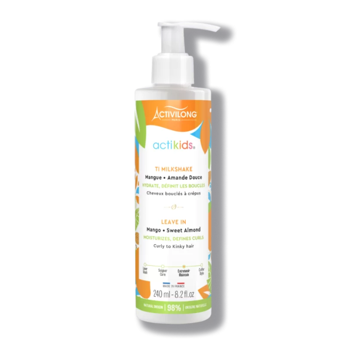 Enriched with Organic Sweet Almond Oil and Mango Butter, the Actikids Milkshake Leave In envelops hair to provide moisture and nutrition, without greasing or weighing it down. Its super power it allows to detangles and to define the curls!