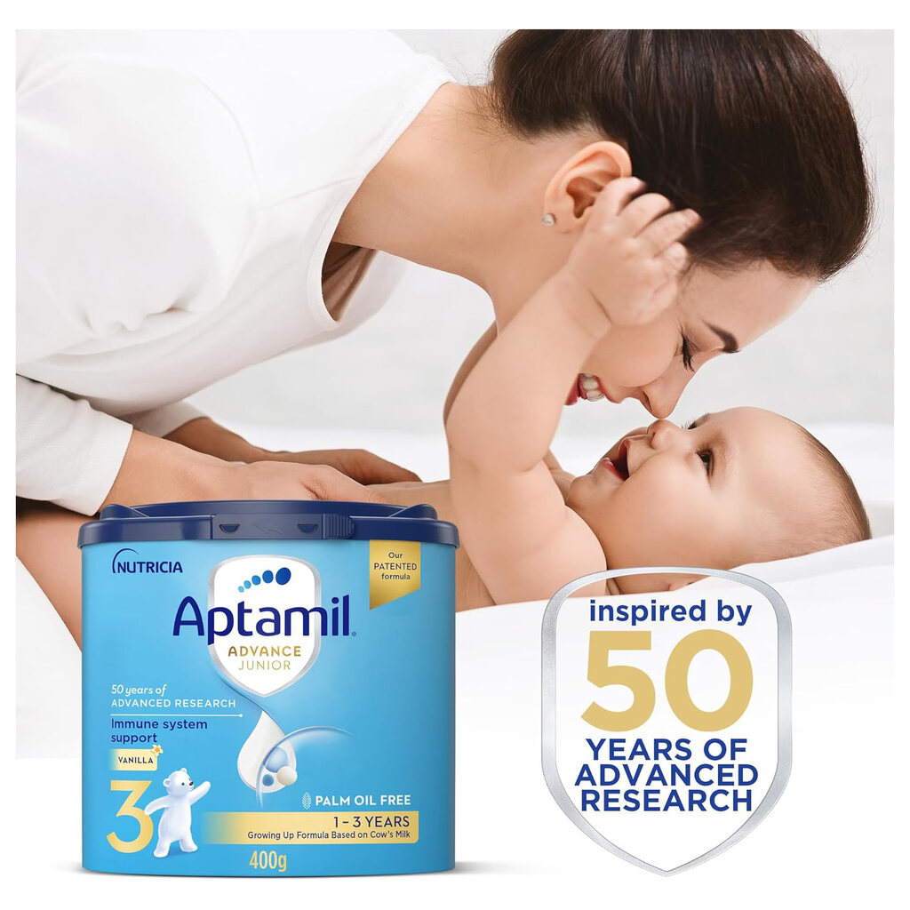 Aptamil Advance Junior 3 is a scientifically advanced patented next generation formulation based on 50 years of research inspired by toddler's needs. Our research has enabled us to develop our patented Aptamil Advance growing up formula. It is specially tailored to support your toddler's nutritional needs from 1-3 years. The beginning of your toddler's life is a special time. We are dedicated to researching early life nutrition & the role of immuno-nutrition for toddlers.