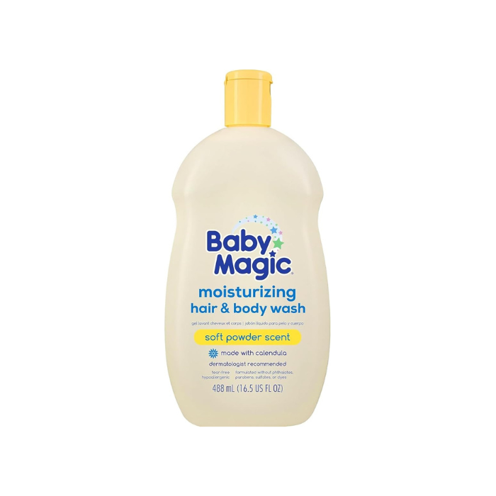 Each Baby Magic product is crafted for baby’s sensitive and delicate skin, featuring nourishing formulas, comforting scents, and wholesome ingredients. The hypoallergenic Baby Magic Body Wash And Shampoo formula is gentle on eyes and contains no without parabens, phthalates, dyes and or sulfates. Dermatologist recommended and hypoallergenic for the sensitive skin of infants, from newborns to toddlers.