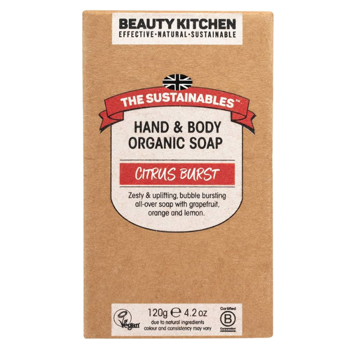 To enjoy the full benefits of Beauty Kitchen The Sustainable Citrus Hand & Body Soap, simply lather the bar with water between your hands or onto a soft sponge or washcloth. Gently massage the rich foam onto wet skin in circular motions, targeting hands or desired areas of the body. Rinse thoroughly with warm water and enjoy the crisp, uplifting aroma of the citrus essential oils. For best results, allow the soap bar to dry between uses by placing it on a well-drained soap dish, extending its longevity and freshness. Suitable for daily use on hands and body. Avoid contact with eyes. In case of irritation, discontinue use and consult your healthcare provider.