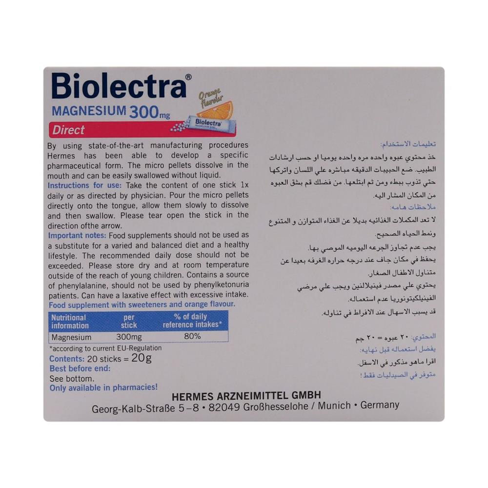 Biolectra Magnesium 300mg 20 Sticks