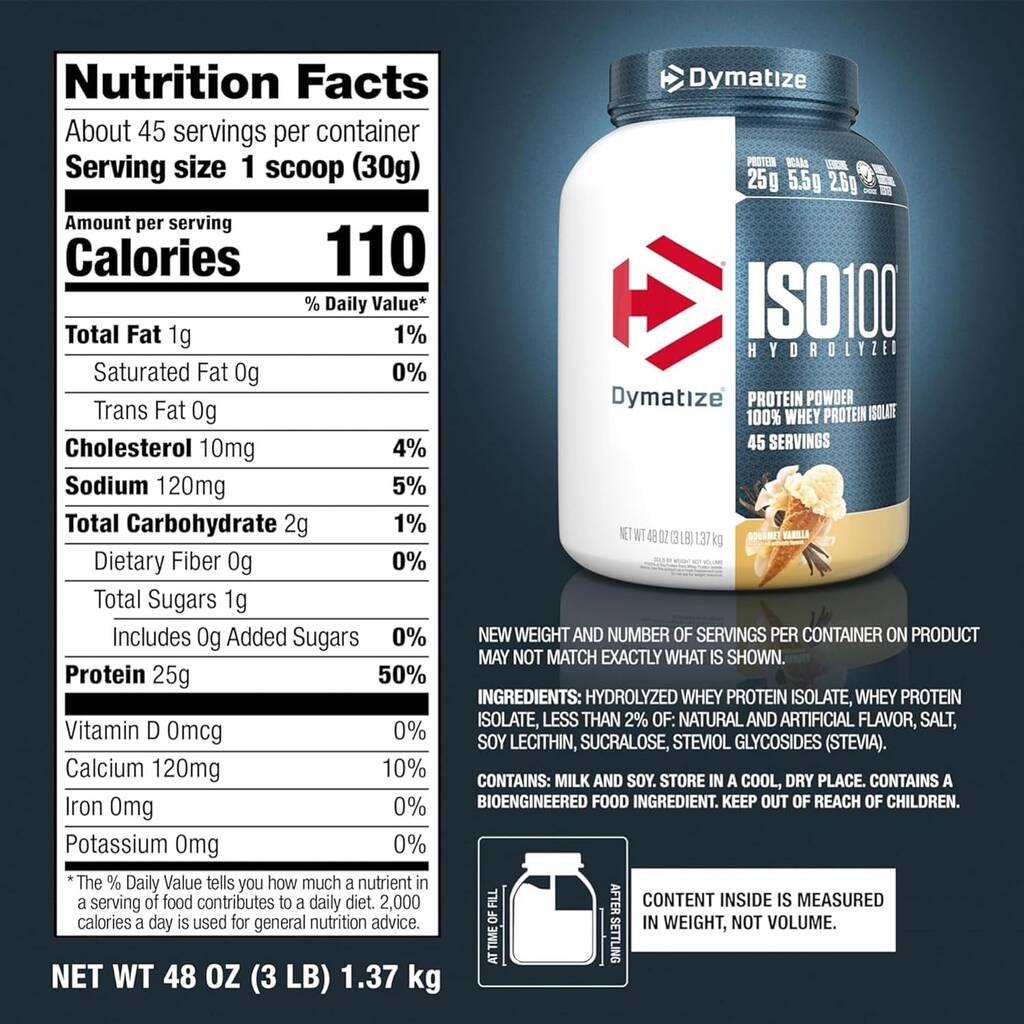 For optimal results, mix one scoop (included) of Dymatize Iso 3 Lb Vanilla with 150–180 ml (5–6 oz) of cold water, milk, or your preferred beverage. Stir, blend, or shake thoroughly until fully dissolved for a smooth, lump-free drink.