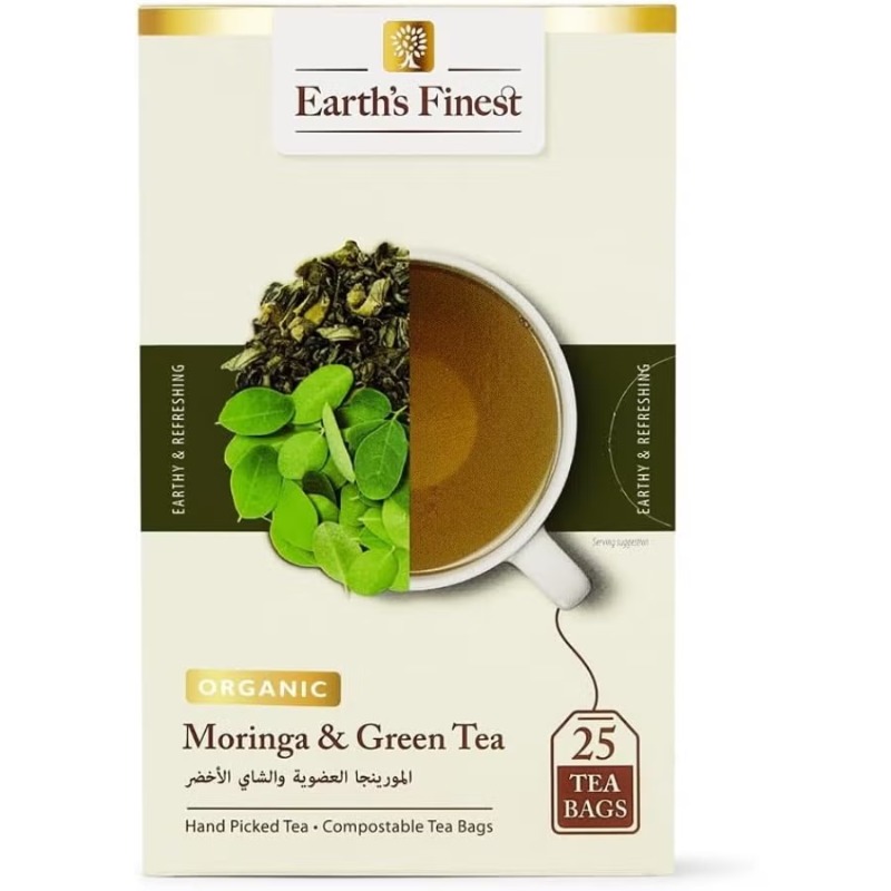 Earth’s Finest Organic Moringa Green Tea, Antioxidant-Rich Superfood Blend for Immunity, Energy & Wellness - 25 Bags