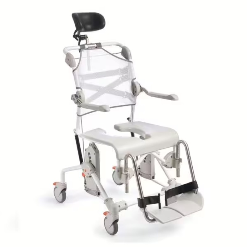Ease of access and comfort : With excellent access around the seat area, personal care routines are made easier for the carer and can be performed with dignity for the user. For sensitive users, extra-soft, seat cushions are available. The soft and quick-drying backrest and curved footrests of the Swift Mobil, add to user comfort.