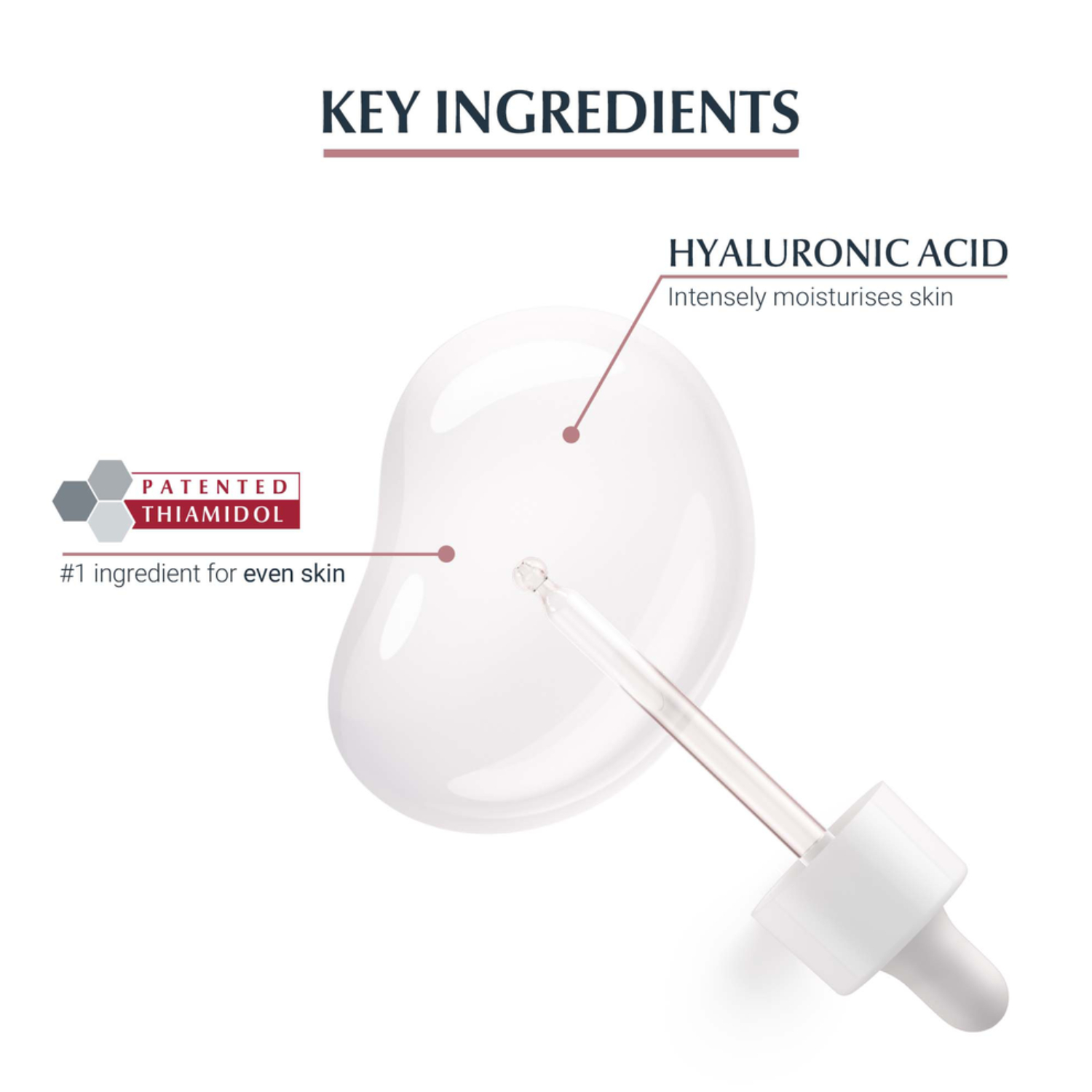 - Reduces Pigment Spots With Thiamidol : Thiamidol, Eucerin’s patented ingredient, helps reduce melanin production by acting at the root of hyperpigmentation. The first results are visible after two weeks of use with continuous improvement over time.
