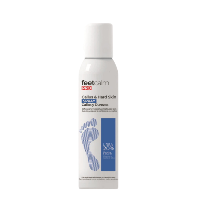Softens and repairs hard calloused skin This formula in spray provides an effective and instant treatment to repair extremely dry, calloused skin with corns and cracks on the feet. It also effectively hydrates and softens cuticles and calluses that form around the nails. With 20% Urea, Olive Oil and Glycerine, helps to eliminate dead cells, leaving skin smoothed and hydrated. Ideal for express pedicures! For greater effectiveness, combine the product with a foot file to reduce calluses and corns.