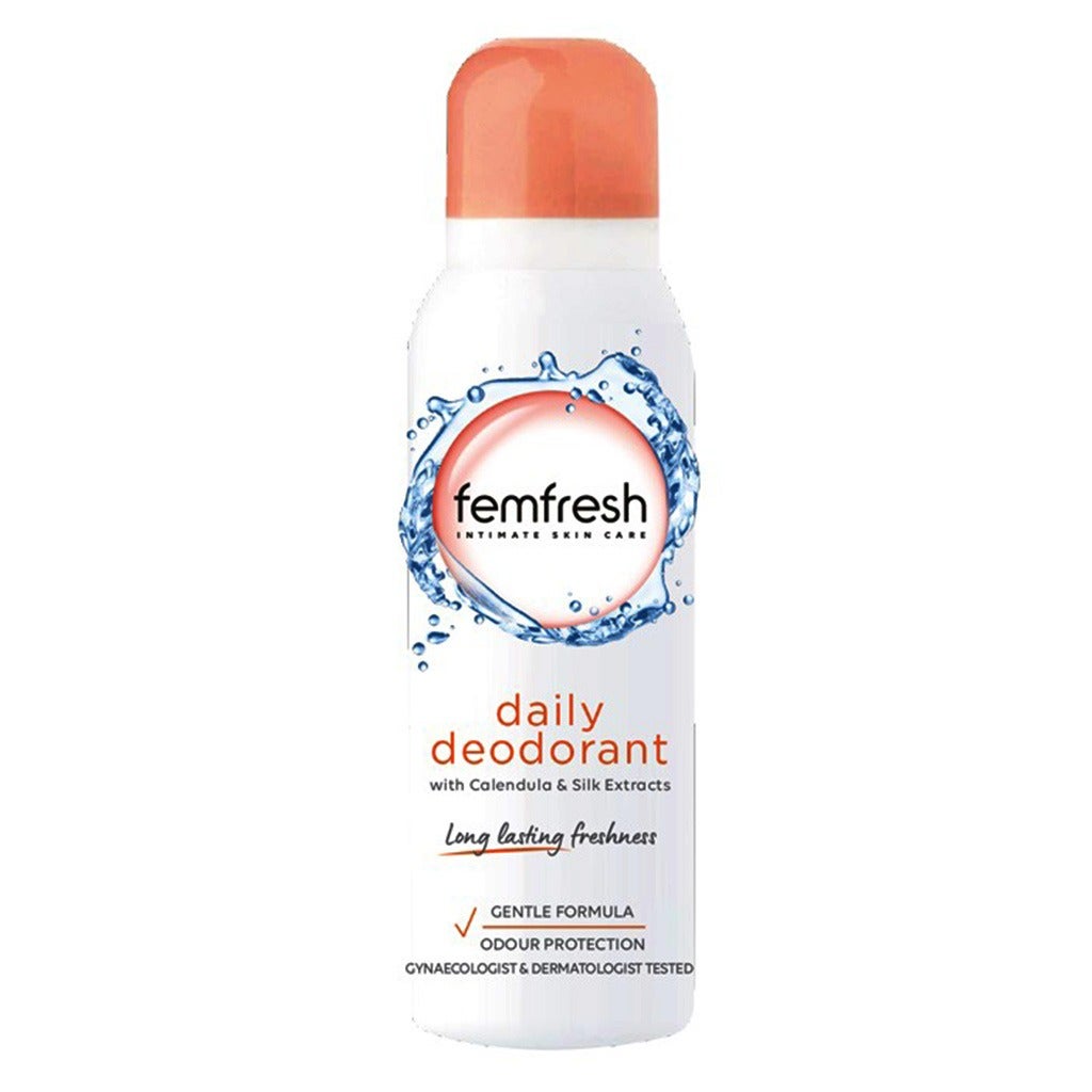 Femfresh Deodorant Spray is a delicately fragranced gentle deodorizing mist specially formulated for intimate feminine use. It gives extra reassurance especially during warm weather or menstruation. It has been dermatologically and gynaecologically tested. Gentle deodorizing mist for extra feminine freshness intimate hygiene dermatologically tested. Delicately fragranced gentle deodorant mist specially formulated for intimate feminine use. It also gives extra reassurance especially during warm weather or menstruation. Femfresh deodorant spray is a the talc-free formula that contains zinc oxide, known for its skin-protective properties. It is suitable for everyday use. It is delicately fragranced deodorant has been especially developed for intimate use to help you feel fresh and confident all day.