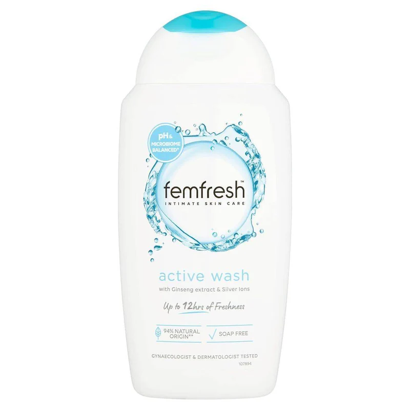 Femfresh Intimate Active Fresh Wash is a gentle, soap-free daily intimate cleanser specially formulated to help maintain the natural pH balance of the intimate area. Designed for active lifestyles, this refreshing wash helps provide long-lasting freshness and odor protection while being kind to sensitive skin. Enriched with mild cleansing agents and soothing ingredients, it cleanses effectively without causing dryness or irritation. Dermatologically and gynecologically tested, Femfresh Active Fresh Wash supports intimate hygiene during workouts, hot weather, travel, or everyday use. Its lightweight formula rinses easily, leaving a clean, comfortable, and confident feeling throughout the day. Suitable for daily use, this wash helps maintain intimate comfort while respecting the body’s natural balance.