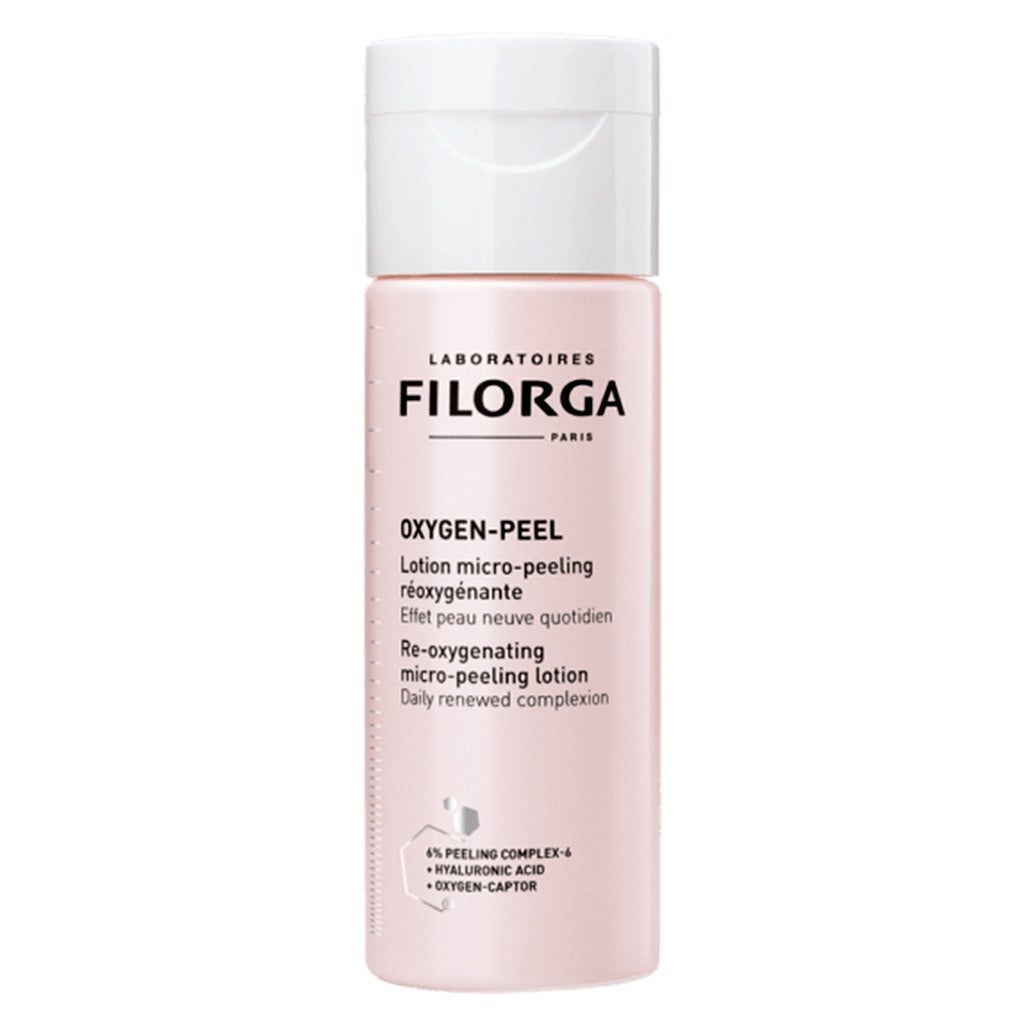 Filorga Oxygen-Peel Re-Oxygenating Micro-Peeling Lotion 150ml is a reoxygenating lotion, which acts against wrinkles, to promote the radiance and homogeneity of the complexion, for a new skin effect. This care is perfectly recommended to fight against the effects of pollution, stress, fatigue, tobacco... When the skin lacks oxygen and the gray mine settles. To give all skin with breathlessness a real cutaneous renaissance, Filorga has created OXYGEN-PEEL, the daily micro-peeling lotion, suitable for all skin types for a daily new skin effect, which offers. Intense smoothing: A micro-peeling cocktail 6-6 6 acids - 6% that exfoliates the skin smoothly and smoothes wrinkles and pores. Ultra-fresh hydration: Hyaluronic acid that rehydrates and plumps the skin. A radiant reoxygenation: Bio-active oxygen sensors, which promote cellular oxygenation and reveal a fresh and luminous complexion. Dermatologically tested.