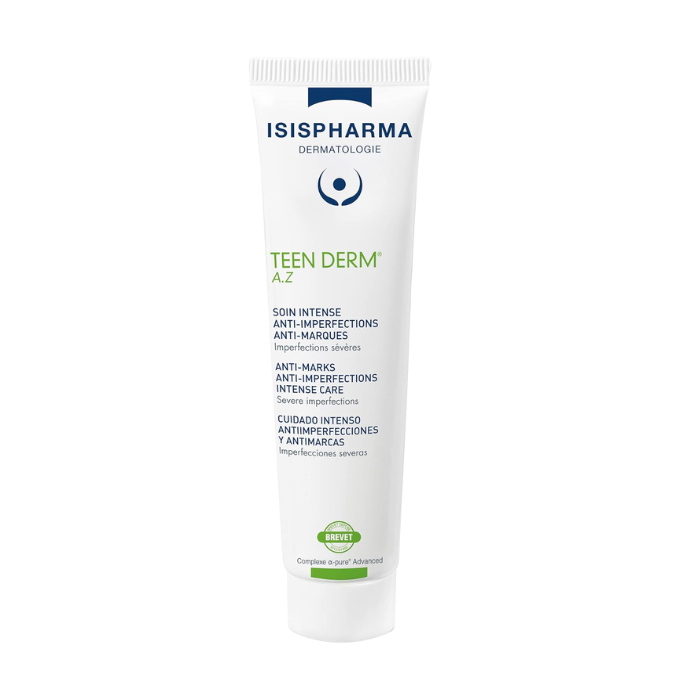 Struggling with severe blemishes, painful breakouts, or dark post-acne marks? Discover Isispharma Teen Derm A.Z Anti-Imperfections Intense Care, a triple-action skincare treatment designed to clear, calm, and correct acne-prone skin. Powered by advanced dermatological actives, Teen Derm A.Z fights inflammatory acne, reduces red and brown residual marks, and delivers a long-lasting soothing effect for restored comfort and confidence.