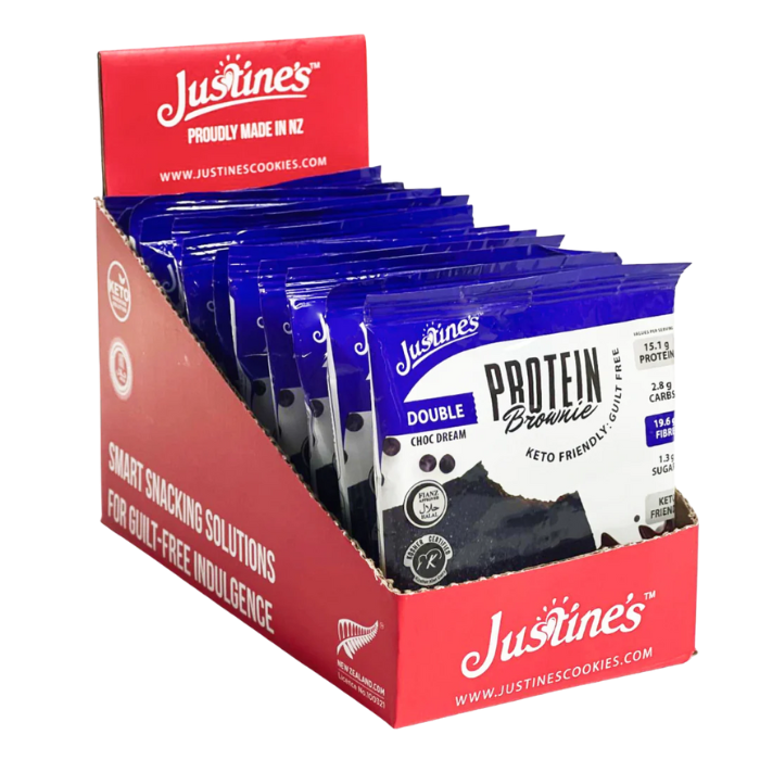 justines protein brownie double choc dream 75g 12s 463881