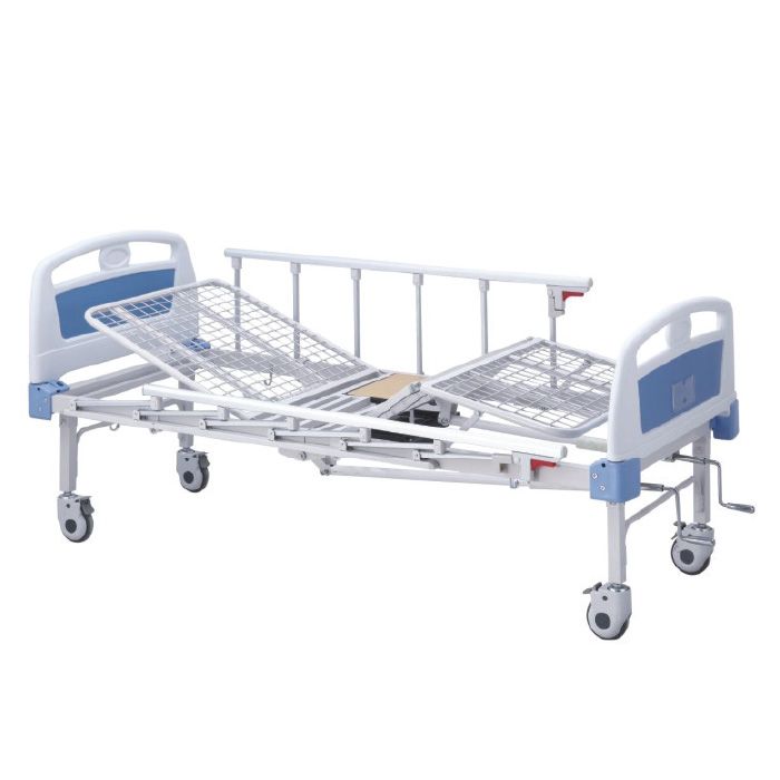 Materials: Bed. Frame and board are made of cold-rolled steel plate and tubes. and coated by electrostatic spray after twice phosphatization. The quality reaches international standard. Head and foot boards are made of imported PE material. Beautiful configuration. durable. capacity over 200kg. the knobs turn agilely with idling position limiter. High strength and highly durable silent casters. making the bed move agilely. lightly and conveniently. The bed is completed with aluminum protective rails and stainless steel l.V.pole.