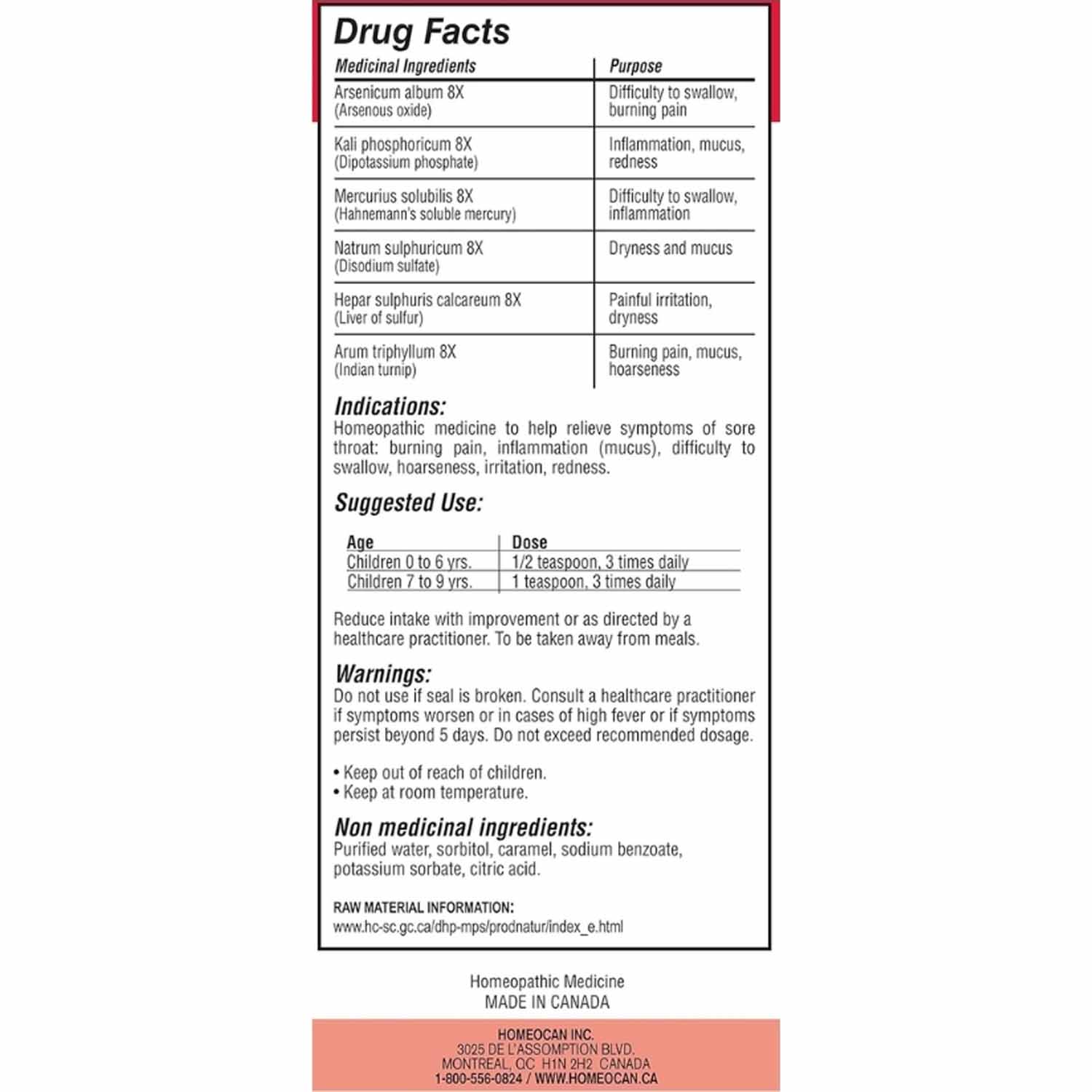 Kids Throat ease syrup is a homeopathic medicine that is meant for children from 0 to 9 years of age. Throat Ease syrup helps relieve symptoms of a sore throat: such as difficulty to swallow, inflammation (mucus), burning pain, hoarseness, irritation and redness. Kids syrup is great tasting too.