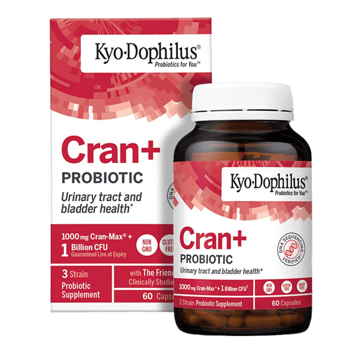 Kyo-Dophilus Cran+ Probiotic contains 1000 mg of Cran-Max cranberry extract and three biocompatible human strain probiotics, The Friendly Trio. Cran-Max is made from 100% cranberry fruit solids through a process that concentrates the natural benefits of the whole cranberry, without the use of any solvents, preservatives, sugar, water, flavorings, or color.