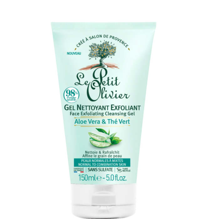 Enriched with Aloe Vera and Green Tea extracts, Le Petit Olivier Exfoliating Cleansing Gel with Aloe Vera and Green Tea cleanses and refreshes normal to combination skin. Its sulfate-free, dermatologically tested formula provides gentle exfoliation and is suitable for daily use.