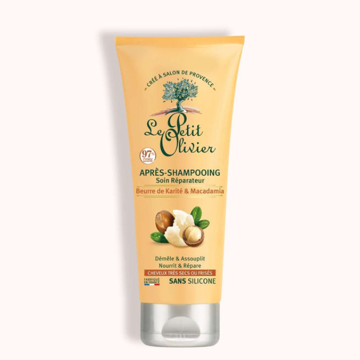 Le Petit Olivier with Shea Butter & Macadamia Oil detangles, softens, nourishes and repairs very dry or frizzy hair. Its melting texture and delicious fragrance make this conditioner a true moment of pampering.