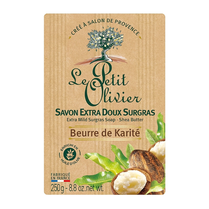 Find all the know-how and authenticity of Petit Olivier in this Extra Gentle Shea Butter Soap. Its gentle formula is enriched with Olive Oil for gently cleansed skin. Its emblematic southern fragrance, from the Grasse region, takes you to the heart of Provence.