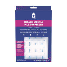Stay organized with the Life Weekly Pill Organizer and Life Deluxe Weekly Pill Organizer, which feature labeled compartments for each day of the week, from sunrise to sunset, ensuring you never miss a dose.