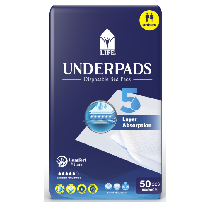 Introducing Life Underpads - it provides a reliable protection and comfort for those dealing with incontinence or undergoing medical procedures. Our absorbent disposable sheets provide peace of mind by safeguarding mattresses and furniture from leaks and stains. With Life Underpads, you can focus on living life to the fullest, knowing you have discreet and reliable protection.
