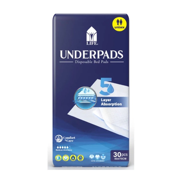 Introducing Life Underpads - it provides a reliable protection and comfort for those dealing with incontinence or undergoing medical procedures. Our absorbent disposable sheets provide peace of mind by safeguarding mattresses and furniture from leaks and stains. With Life Underpads, you can focus on living life to the fullest, knowing you have discreet and reliable protection.