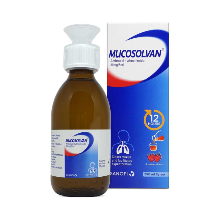 Mucosolvan is a cough syrup that provides an effective 12-hour solution for a wet cough in adults and children above two years old. It has a trusted formulation of Ambroxol hydrochloride with a three-way action that loosens the phlegm, clears the airways and, protects against new mucus forming.