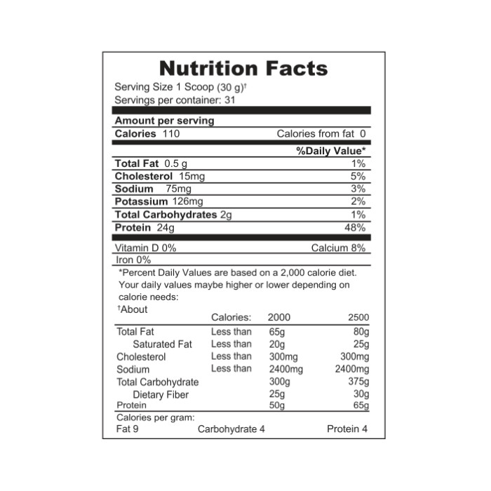 - Highest protein percentage: 24 g of protein 83% protein by weight