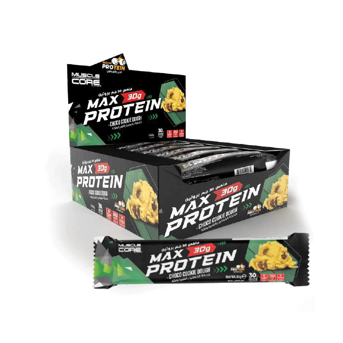 Muscle core max protein bar is packed with 30g High protein to help meet your daily protein needs and formulated with delicious Choco cookie dough flavour and no added sugar to satisfy your taste buds with guilt-free
