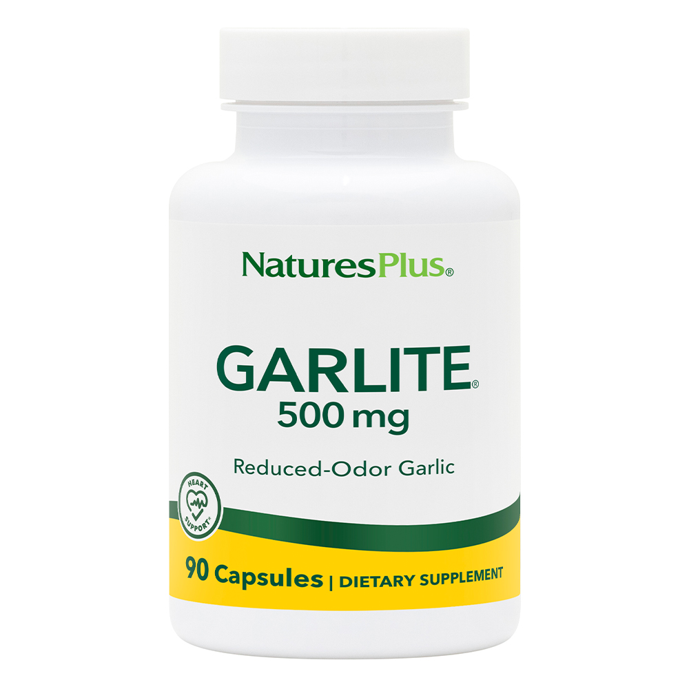 An advanced odorless garlic formulation, manufactured with the unique non-GMO aged garlic. Garlite contains all the natural allicin, vitamins, minerals and amino acids present in fresh garlic. Garlite vegetarian capsules guarantee no after-odor, through either the mouth or pores, after consumption. NaturesPlus is committed to offering the best supplements available anywhere. Look for the NaturesPlus logo as your guarantee of quality.