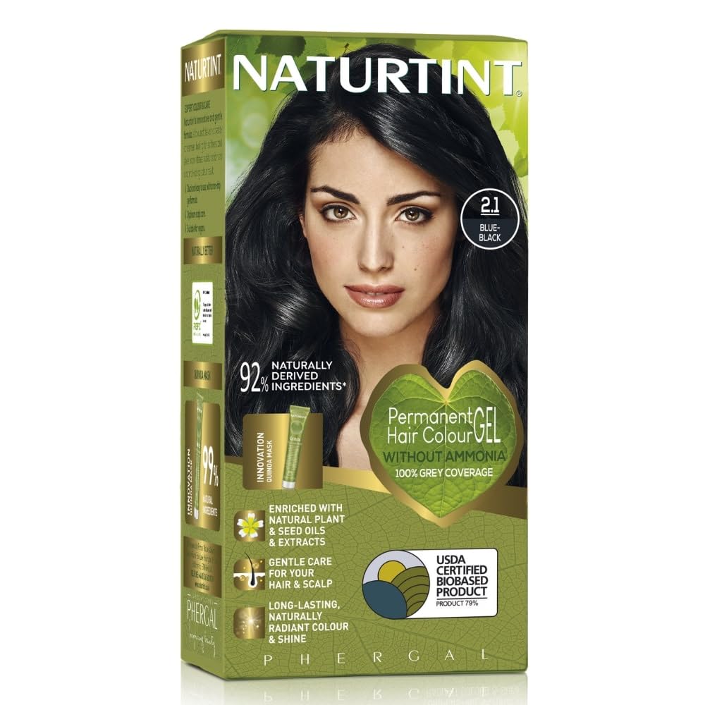Achieve bold, long-lasting color with Naturtint 2.1 Blue Black 165ml, a permanent hair dye without ammonia formulated with 92% natural-origin ingredients. Enriched with Olive Oleic Acid, Meadowfoam Seed Oil, and a 99% natural Quinoa Mask, it strengthens, hydrates, and enhances shine while ensuring deep, vibrant blue-black tones and scalp comfort.