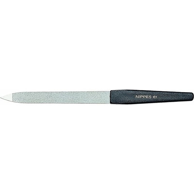 Perfect nails thanks to the Nippes Sapphire Nail File. Made of the best hardened steel. due to the handy handle, this file lies comfortably in the hand, even during prolonged use. The rounded file blade (hollow file) allows for pleasant, precise figuring. Use the coarse side for shortening and the fine side for shaping. Important, always file in one direction only!