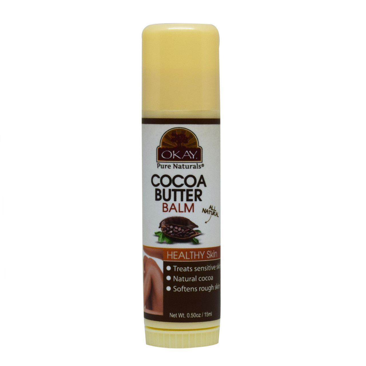 OKAY Cocoa Butter Tube Stick provides intense moisture and nourishment for dry, rough skin. Enriched with pure cocoa butter, this convenient, travel-friendly stick hydrates, softens, and protects, leaving skin smooth, supple, and radiant. Perfect for lips, hands, elbows, and any dry areas in need of extra care.