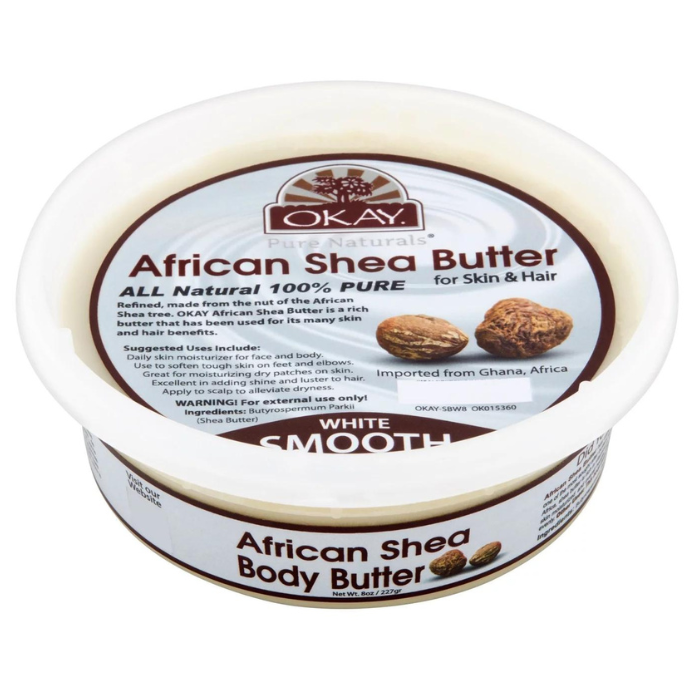 Made from the nut of the African Shea Tree, OKAY African Shea Butter is a rich butter known for its potential benefits. It has a history of traditional use in Africa for its moisturizing and healing properties. OKAY African Shea Butter contains vitamins A, E, and F, along with various fatty acids that can help nourish and moisturize the skin.