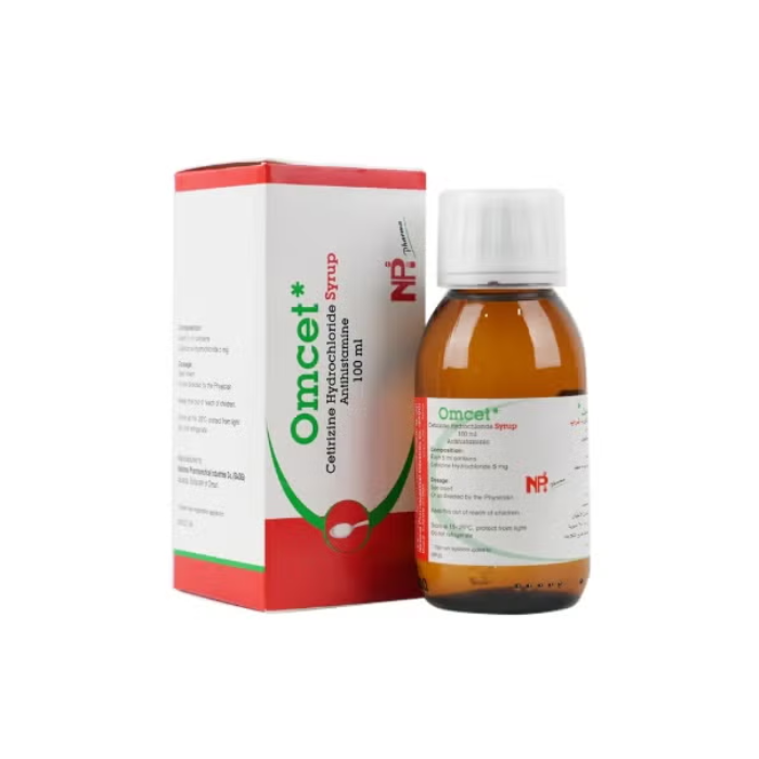 OMCET 5mg/5ml Syrup contains Cetirizine Hydrochloride, a non-sedating antihistamine that provides effective relief from allergic symptoms. It works by blocking histamine, a substance in the body that causes allergic reactions. This syrup is commonly used for both seasonal allergic rhinitis and chronic urticaria in children and adults.