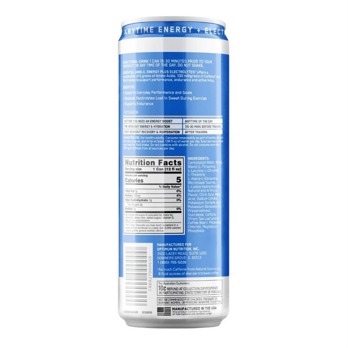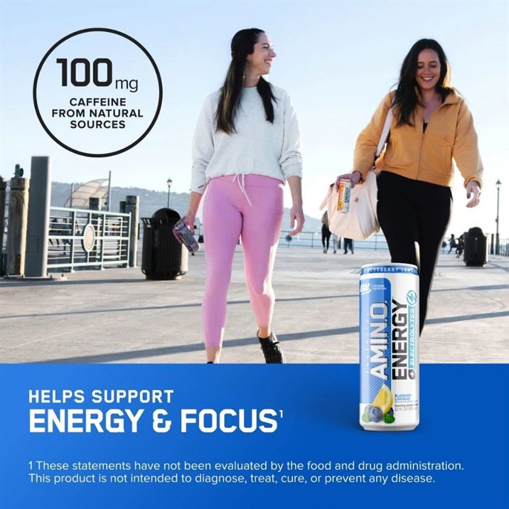 Optimum Nutrition Amino Energy Sparkling Drink – Blueberry Lemonade is a crisp, lightly carbonated functional energy beverage that delivers clean energy, essential amino acids (EAAs), and electrolytes in a convenient ready-to-drink can. Formulated with naturally sourced caffeine, it helps boost focus and performance without excessive sugar or heaviness. The refreshing Blueberry Lemonade flavor balances fruity sweetness with a citrus finish, making it an ideal choice before workouts, during active days, or as a mid-day pick-me-up. Designed for versatility, Amino Energy Sparkling supports hydration and amino replenishment while providing a smooth, effervescent drinking experience. It’s a smart option for active lifestyles seeking balanced energy with a refreshing twist.