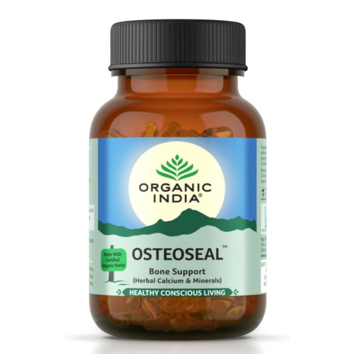 ORGANIC INDIA Osteoseal - Bone Support Herbal Calcium & Minerals ORGANIC INDIA Osteoseal Ayurvedic Capsules increases bone mineral density, enhances healing of fractured bones, callus formation and improves cartilage regeneration & strenthens teeth.It provides bio available organic calcium, phosphorus, vitamins and amino acids to promote healthy bone growth and strong teeth. Made with Certified Organic Herbs , HPMC veg capsule , Tested for heavy metals