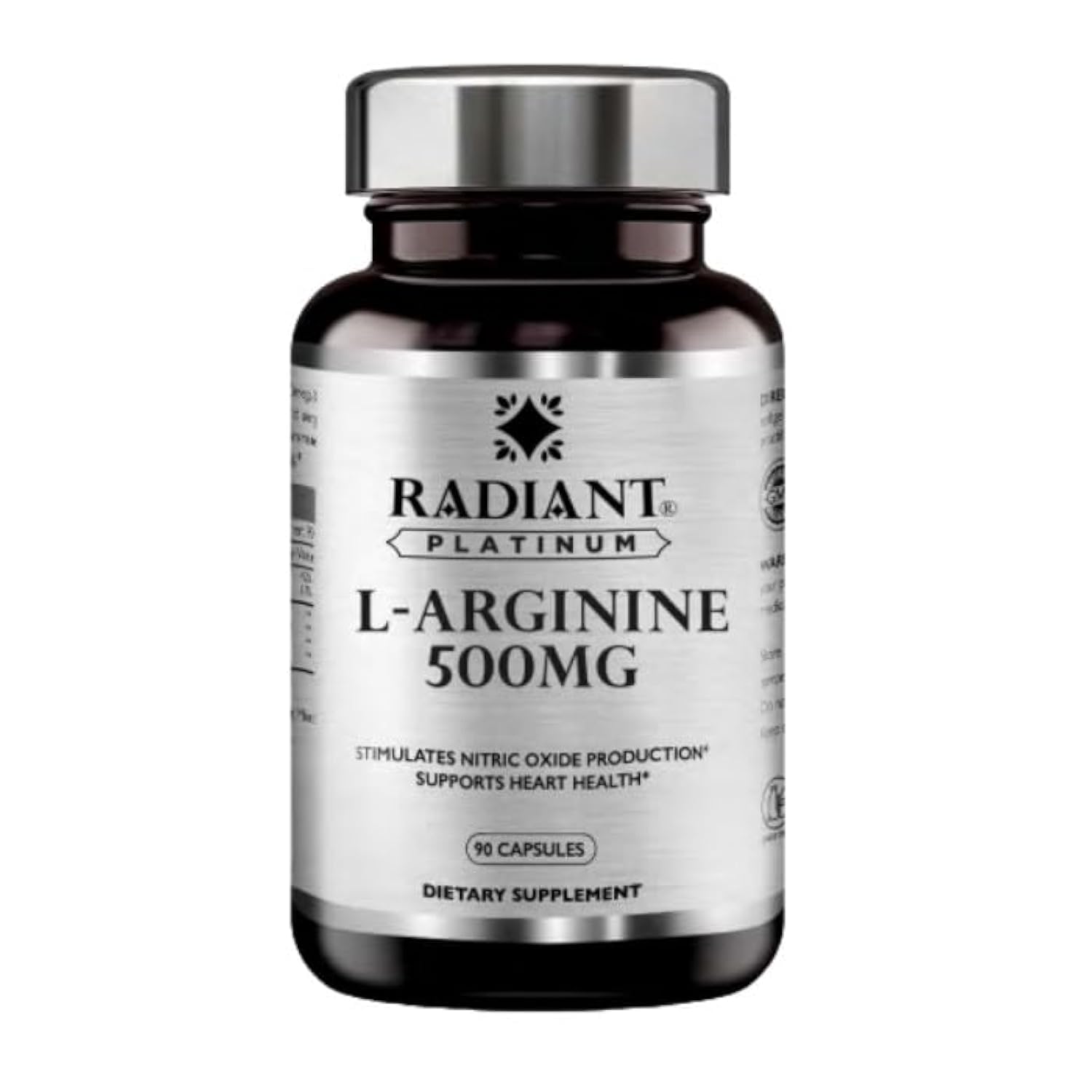 Radiant Platinum L-Arginine 500mg, Nitric Oxide Booster, Heart Health & Muscle Recovery Support - 90 Capsules