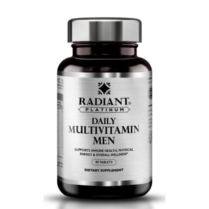 Radiant Platinum's Daily Multivitamin Men are specially formulated supplements that provide a combination of essential vitamins and minerals to support men's overall health and well-being. B-vitamins in multivitamins help convert food into energy, supporting metabolism and vitality. Vitamins C, D, and zinc in multivitamins bolster the immune system, helping the body fight off infections and illnesses. It contains nutrients like vitamin B6, B12, folic acid, and magnesium, which support cardiovascular health and help reduce the risk of heart disease. Calcium, vitamin D, and other minerals in multivitamins promote strong bones and support muscle function.
