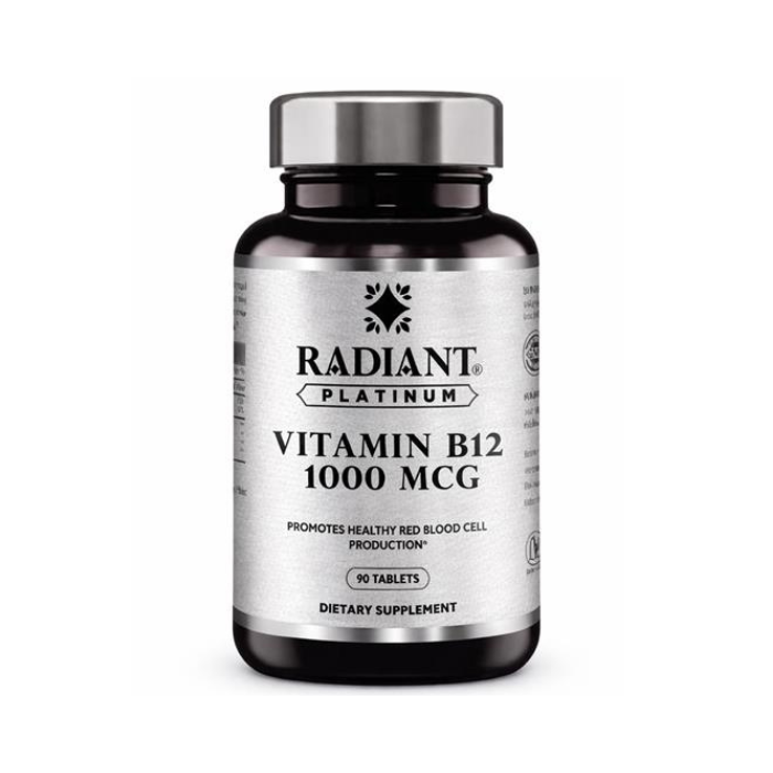 Radiant Platinum Vitamin B12 1000mcg, Supports Healthy Nerves, Energy Metabolism - 90 Tablets