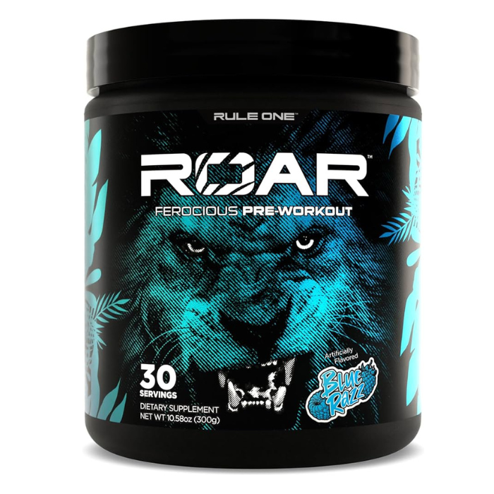 Rule 1 R1 Roar Pre-Workout Blue Razz 30 Serve unleashes powerful performance support for athletes and fitness enthusiasts demanding more from every session. Specially formulated by Rule 1, a brand known for its uncompromising manufacturing standards and innovative sports nutrition, Roar delivers a meticulously balanced blend of clinically reviewed ingredients to invigorate your workout. This ferocious pre-workout harnesses creatine, beta-alanine, taurine, L-citrulline, and a potent electrolyte complex to provide performance, endurance, hydration, and pump support. Enhanced with caffeine from green tea and coffee extracts, the Blue Razz flavor offers a delicious, sugar-free, low-calorie energy boost designed for high-intensity training. Experience the next level in workout readiness with every scoop.