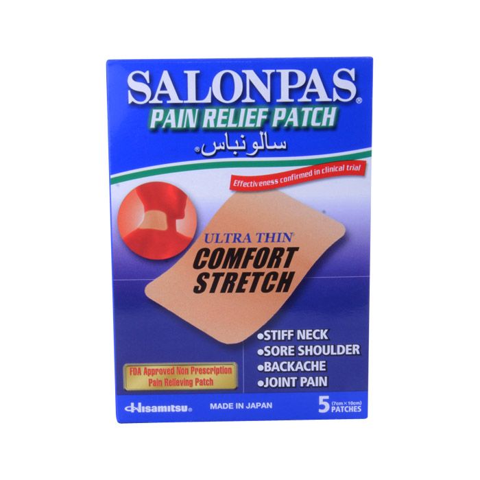 Salonpas Ultra Thin is a pain relief adhesive patch that contains medicated ingredients that penetrate into the affected area to soothe muscle and joint pain. Salonpas Ultra Thin, combined with menthol properties, is stretchable, breathable and easy to peel. Flexible materials to fit the application area. Leave no sticky residues when removed. Skin-tone color.