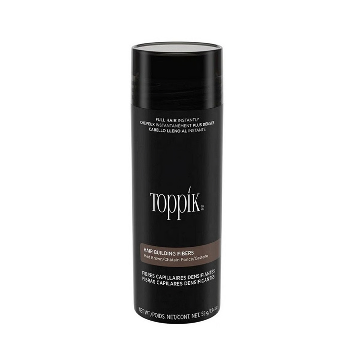 Toppik gives the instant appearance of a thick, full head of hair. Toppik Hair Building Fibers are made from natural Keratin of the highest grade, the same type of protein found in real hair, which makes it look completely natural and undetectable. These natural Keratin fibers have an innate static charge that ensures they adhere to any type of hair—even the finest of hair—and resist wind, rain and perspiration