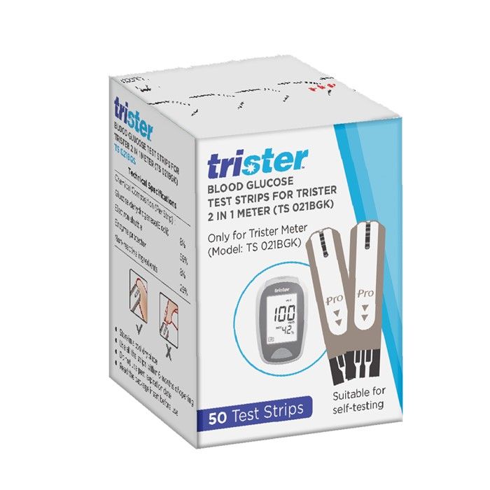 - These glucose test strips are only suitable for Trister 2 in 1 Meter, Model-TS 021BGK