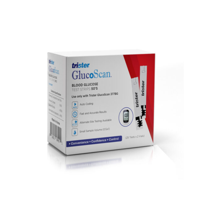 Trister Glucoscan Blood Glucose Test Strips 50s, Auto-Coding, Fast and Accurate Results, TS-378BGT