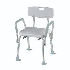 A reliable and user-friendly shower chair featuring arm supports, designed to provide added confidence and ease during bathing for elderly individuals or those with limited mobility.