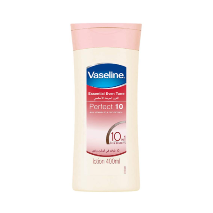 Vaseline lotions with healing micro-droplets of Vaseline Jelly replenish lost moisture and absorb deeply to keep dry skin healed. Vaseline Healthy White Perfect 10 Body Lotion restores 10-in-1 whitening and anti-aging skin benefits. Contains AHA and Pro-Retinol to help reduce fine lines and first signs of aging while boosting collagen and increasing skin elasticity.