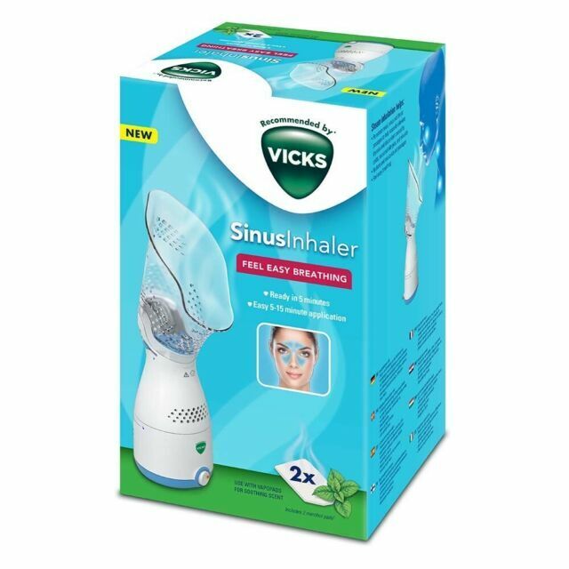The Vicks Sinus Inhaler helps provide symptomatic relief from cough and congestion caused by colds, seasonal allergies, and sinusitis. The ergonomic design helps the steam to penetrate nasal, sinus and throat passages for fast relief. Experiencing nasal congestion, sinus pressure or overall respiratory discomfort due to seasonal allergies or the common cold. The Vicks Sinus Inhaler delivers warm, soothing steam to naturally and effectively help ease those discomforts. The personal steam inhaler is designed to exclusively work with Vicks Vapo Pads to provide soothing menthol vapors for added comfort.