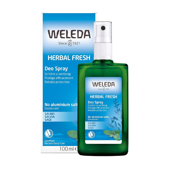 Weleda Sage Deodorant Spray 100ml delivers a refreshing, tangy-fresh scent while working in harmony with your body. Unlike conventional deodorants that block pores, this natural formula lets your skin breathe and maintains its detoxification process. Enriched with sage essential oil, it gently neutralizes body odor, keeping you feeling fresh and confident throughout the day. Free from aluminum salts, synthetic preservatives, fragrances, colorants, and mineral oil derivatives, it is gentle, dermatologically tested, and suitable for all skin types.